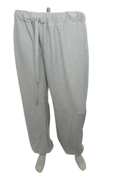 Silver Sequin Drawstring-Waist Crop Pants
