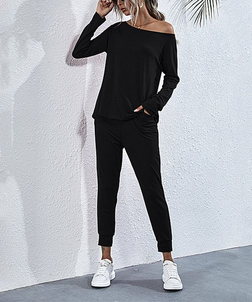 Black Off-Shoulder Long-Sleeve Top & Joggers
